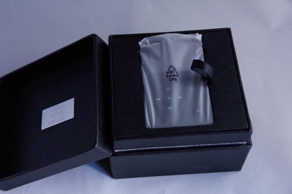開盒后可以看到本次主角AP100靜靜的躺在盒中。包裝蓋的里側中央位置能看到一只金屬銘牌上面刻有產品型號與用戶編號。提拉黑色布繩即可取出播放器本體:不要嫌我羅嗦,這里再次表揚下細節的處理。國產很多產品經常忽略細節忽略用戶體驗,而hidizs沒有犯這個錯誤。老道的設計再次證明這丫之前確實是行業內的老司機實戰經驗豐富。