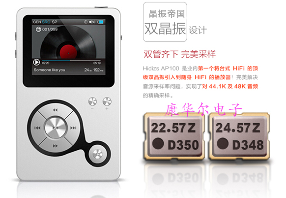HIDIZS隨身播放器是今年推出的新款播放器,精致的外觀和獨特的配置,讓我大吃一驚,此款播放器內部既然設有兩顆貼片晶振元件,驚就驚在這里了,大這有沒有絕得這款播放器從外觀看上去并沒有那么高檔,設計上中規中矩略顯老氣,不是智能更不高端,可它的內部配置卻與眾不同,這是為何,難道它有什么特別的功能嗎?沒錯,HIDIZS AP100是業內第一將臺式HIFI的頂級雙晶振引入到隨身HIFI的播放器!完美解決音源采樣率問題,實現了對44.1K及48K音頻的精確采樣。